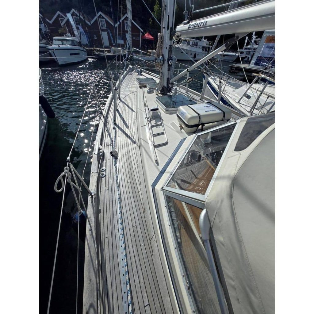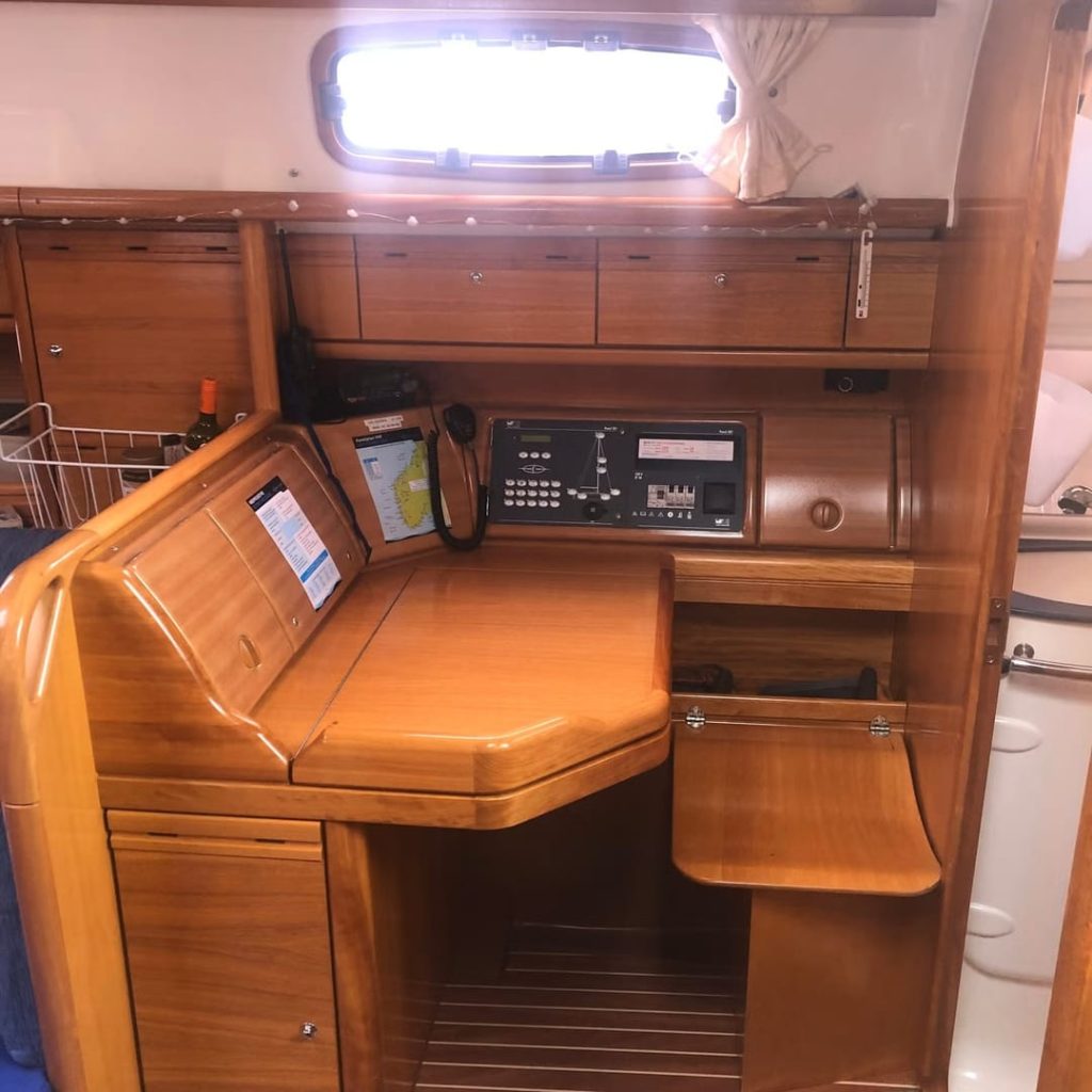 Есть носовая подрулька, установленная совсем недавно, мощная якорная лебёдка, радар, плоттер, автопилот, УКВ, стереосистема, компрессорный холодильник, бойлер, отопление, две помпы, тиковый кокпит, шлюпбалка для тузика, стол в кокпите и множество полезных мелочей.
