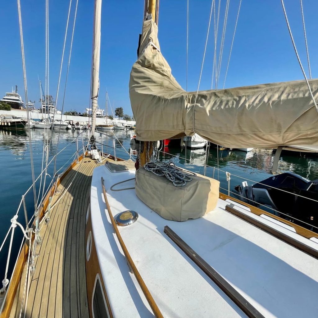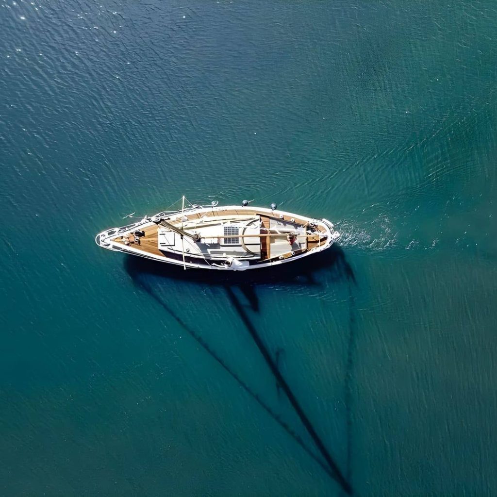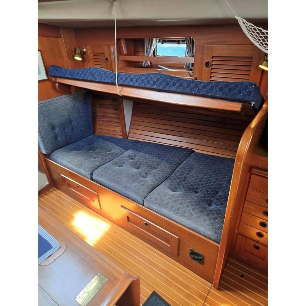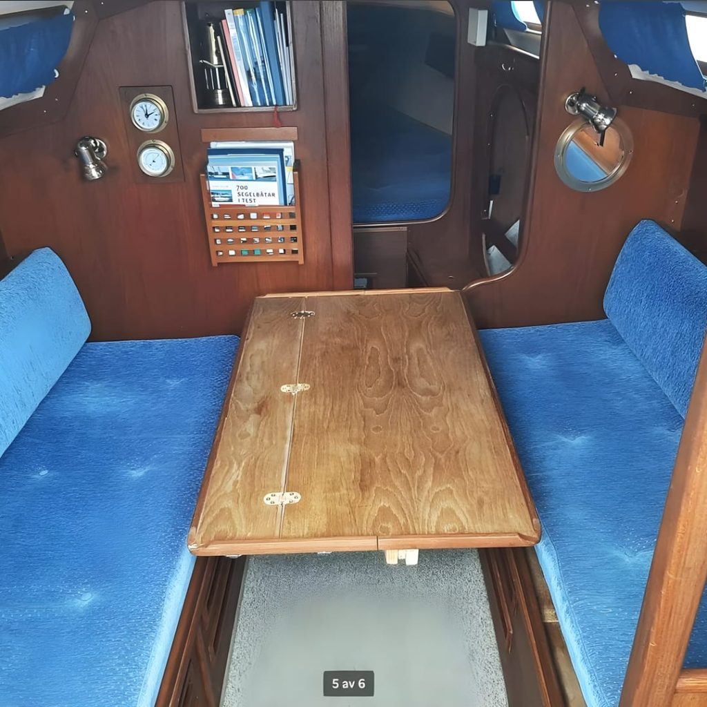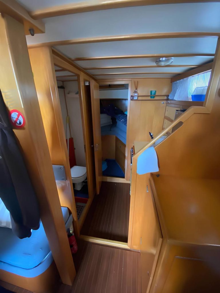 Это редкий, просторный, мореходный и рассчитанный на комфортные длительные переходы мотосейлер. Внутри: отдельная каюта, салон с раскладывающимся столом, камбуз с плитой, духовкой и холодильником, а также полноценный санузел с электрическим туалетом и горячим душем.
