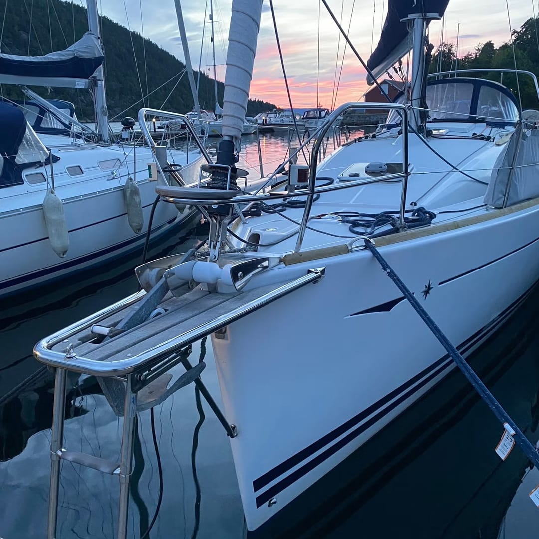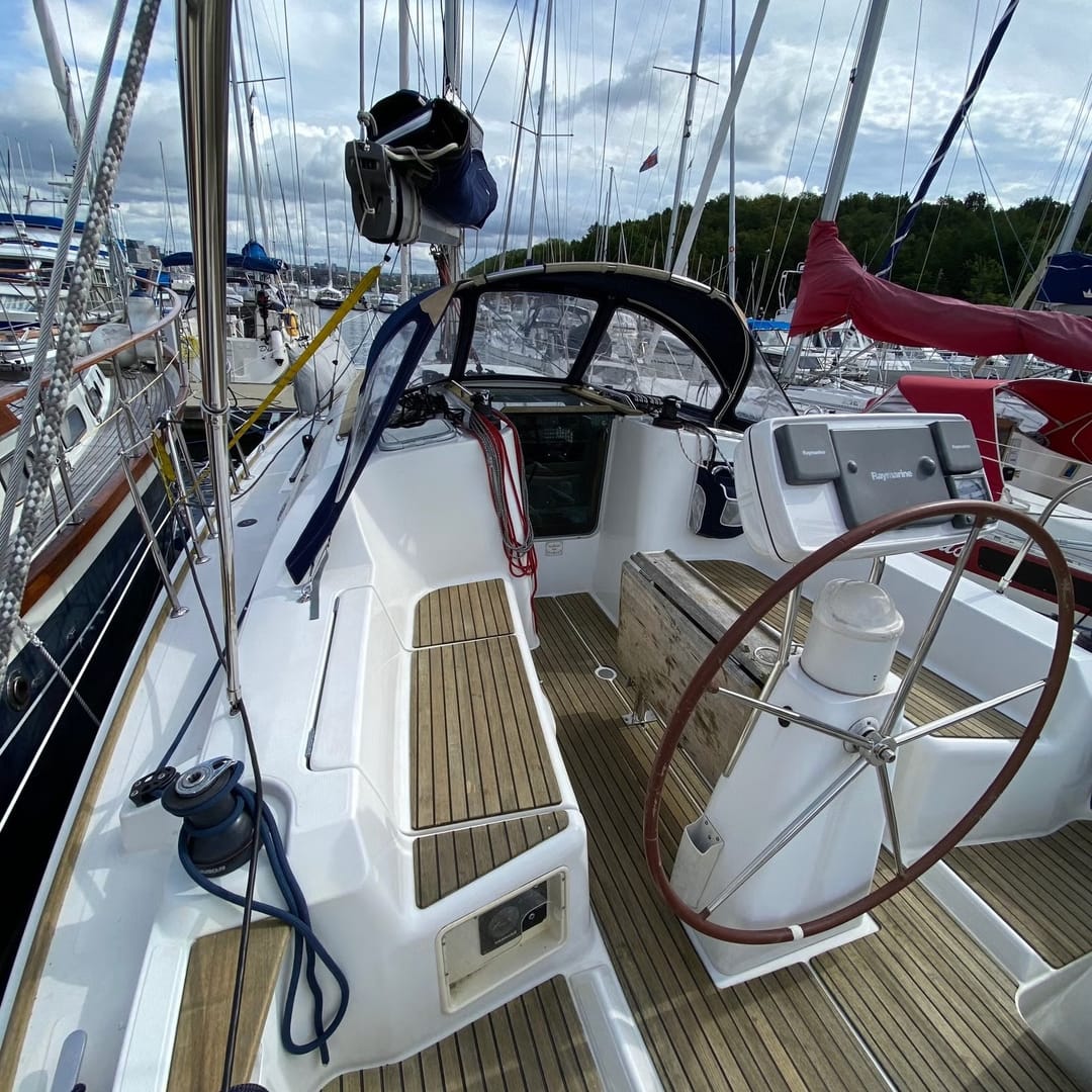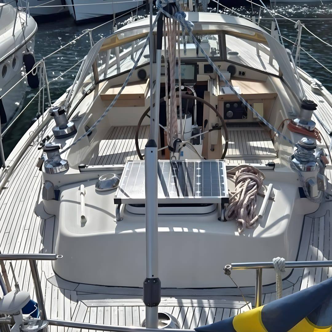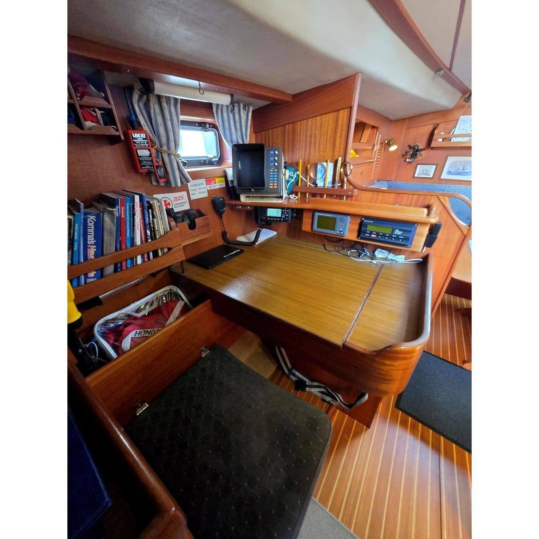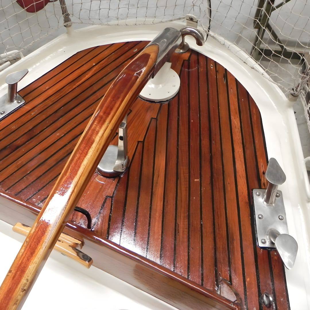 Есть носовая подрулька, установленная совсем недавно, мощная якорная лебёдка, радар, плоттер, автопилот, УКВ, стереосистема, компрессорный холодильник, бойлер, отопление, две помпы, тиковый кокпит, шлюпбалка для тузика, стол в кокпите и множество полезных мелочей.