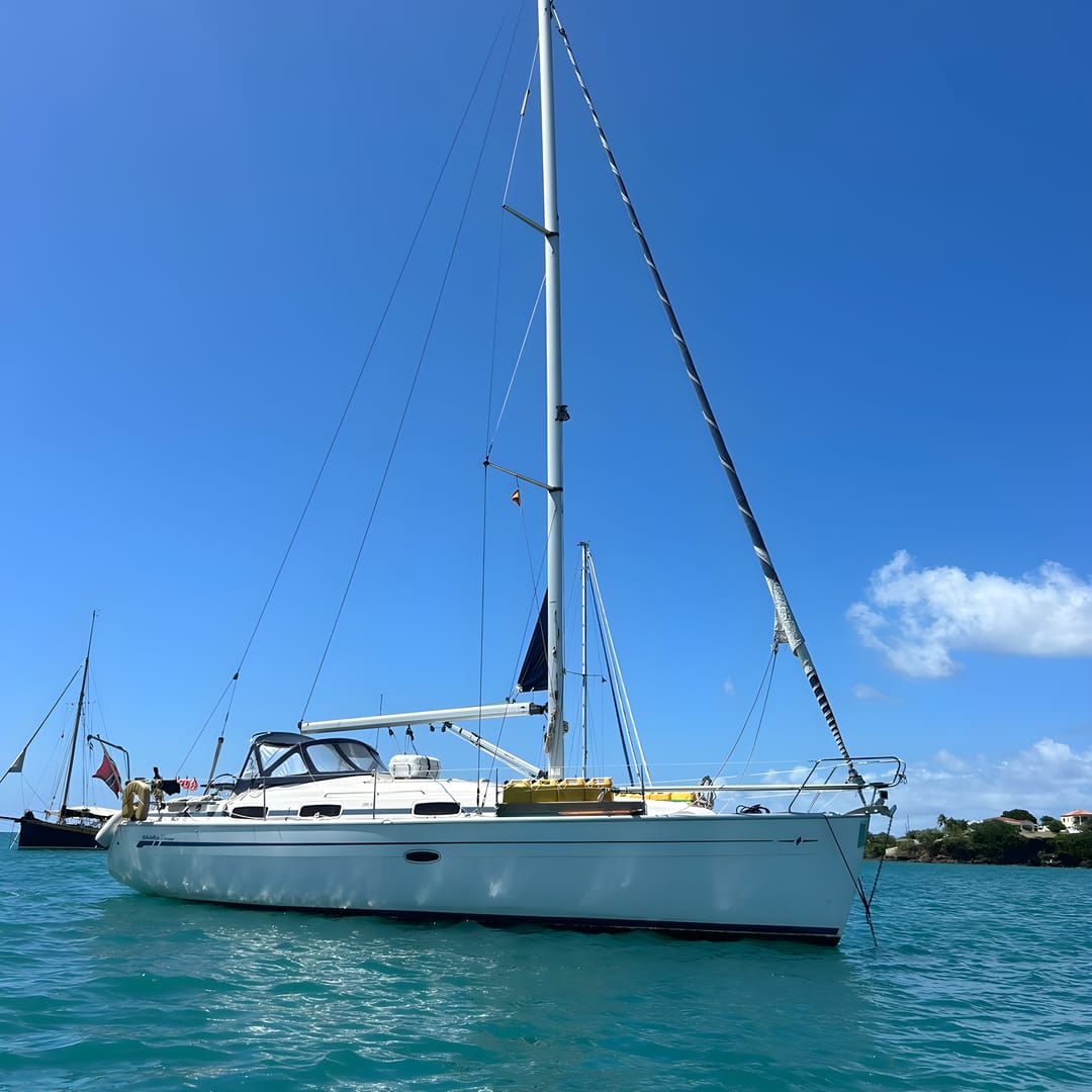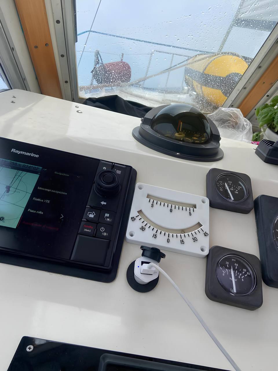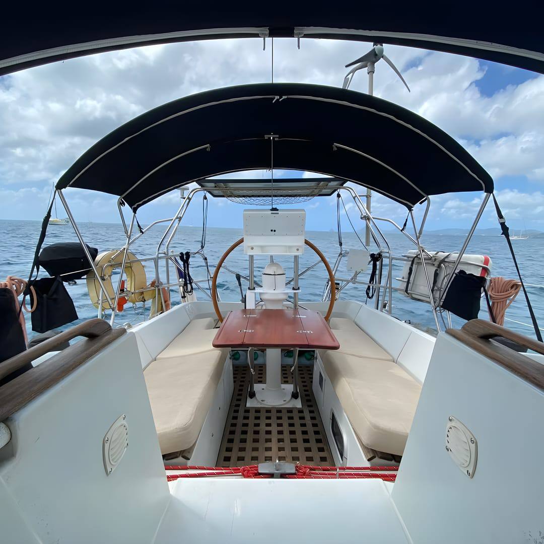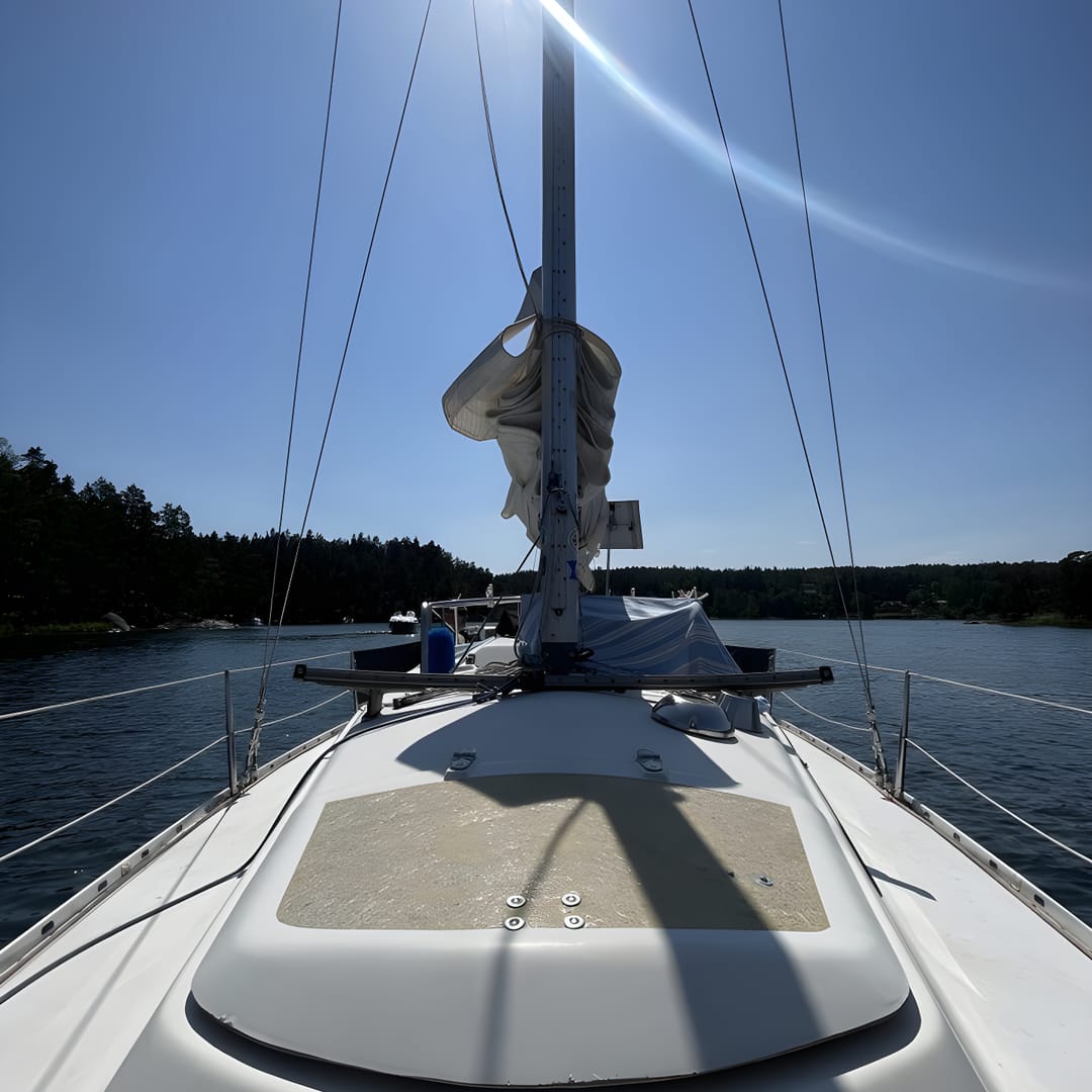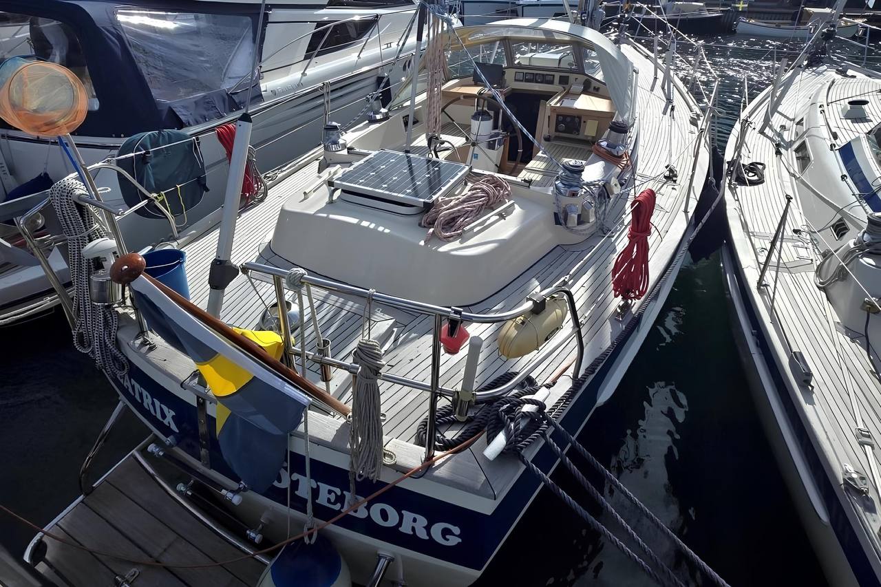 Есть носовая подрулька, установленная совсем недавно, мощная якорная лебёдка, радар, плоттер, автопилот, УКВ, стереосистема, компрессорный холодильник, бойлер, отопление, две помпы, тиковый кокпит, шлюпбалка для тузика, стол в кокпите и множество полезных мелочей.