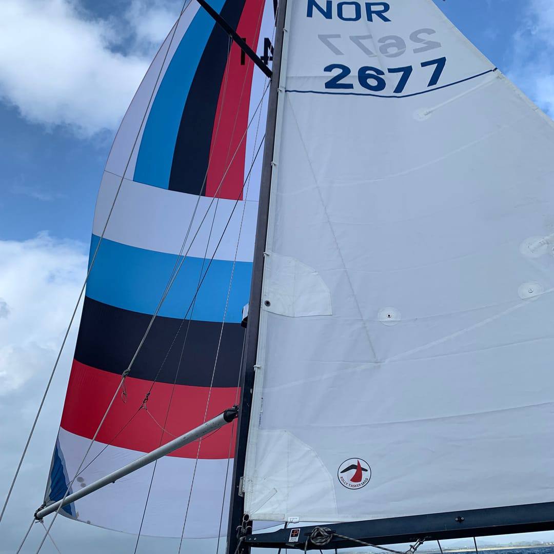 По парусному вооружению лодка тоже укомплектована достойно: грот, генуя на закрутке, чехол для грота, Lazy Jack, вся бегучка — обновлённая. Мачта проходила обслуживание с покраской и заменой кабелей.