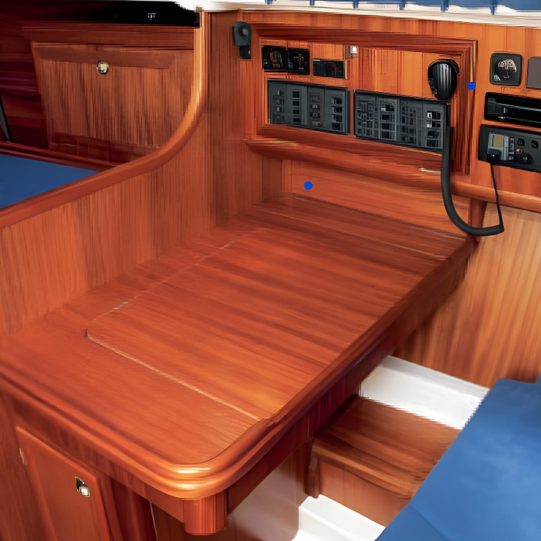 Лодка прошла значительный набор работ: обновление электрики, полировка корпуса, покраска, замена кингстонов, ремонт древесины, новые окна, обслуживание двигателя, новый аккумуляторный банк, обновлённый якорь с 50 м цепи и множество других улучшений.