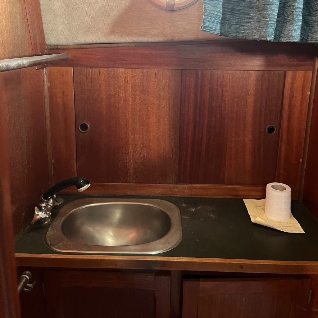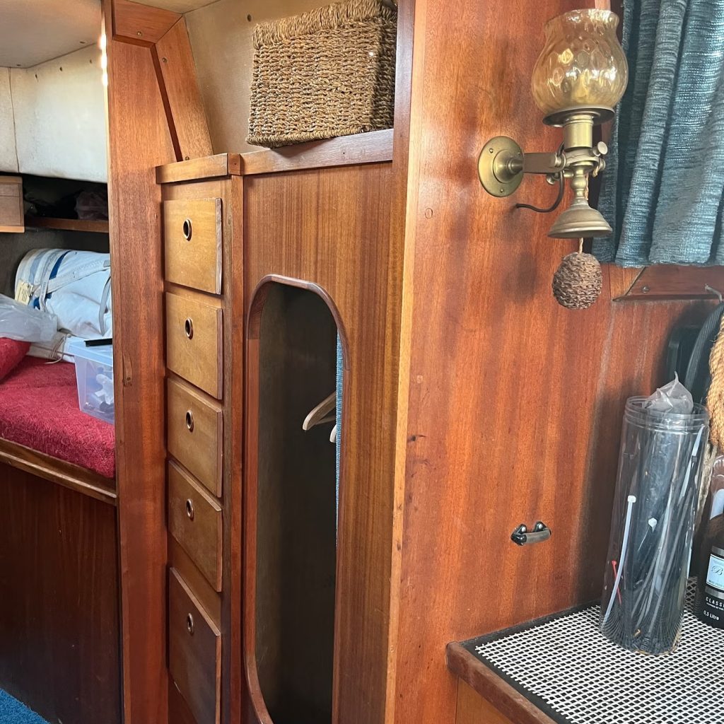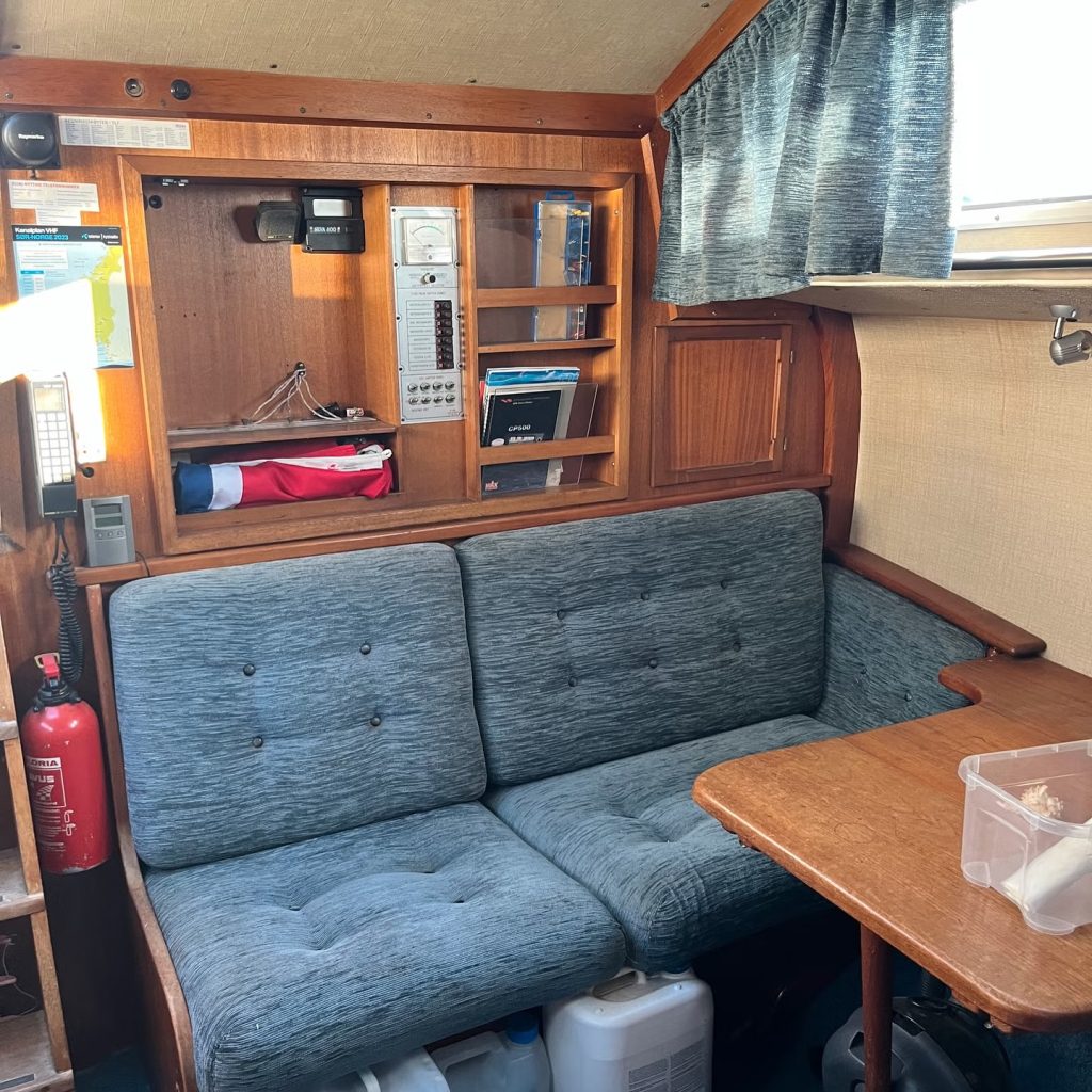 Внутри два изолированных пространства: форпик и кормовая каюта, каждая с отдельными спальными местами. Это редкость для лодок до десяти метров, особенно в сочетании с отдельным санузлом и душем.
