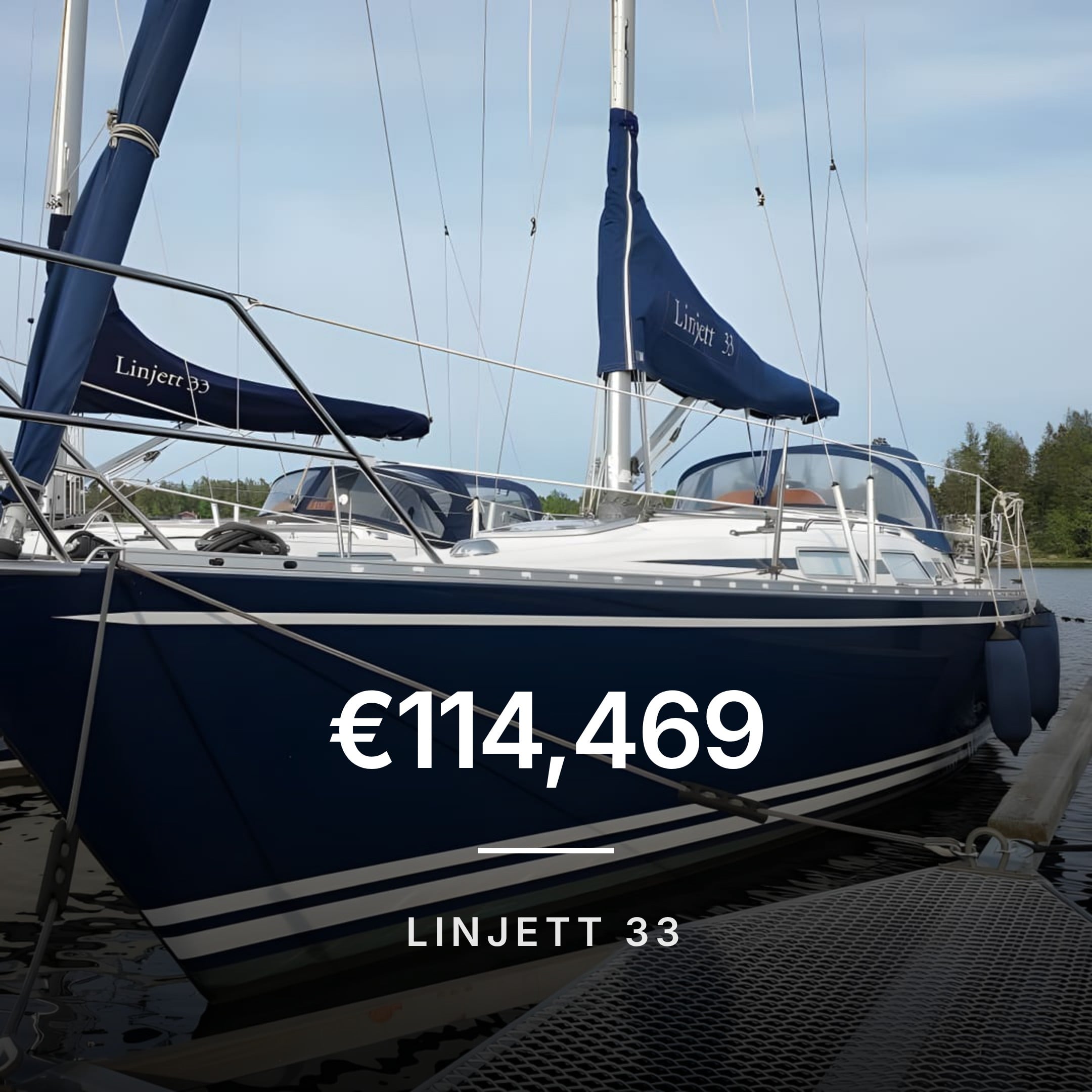 Друзья! Сегодня у нас Linjett 33, 2002 года — ухоженная скандинавская классика за 114 469 евро.