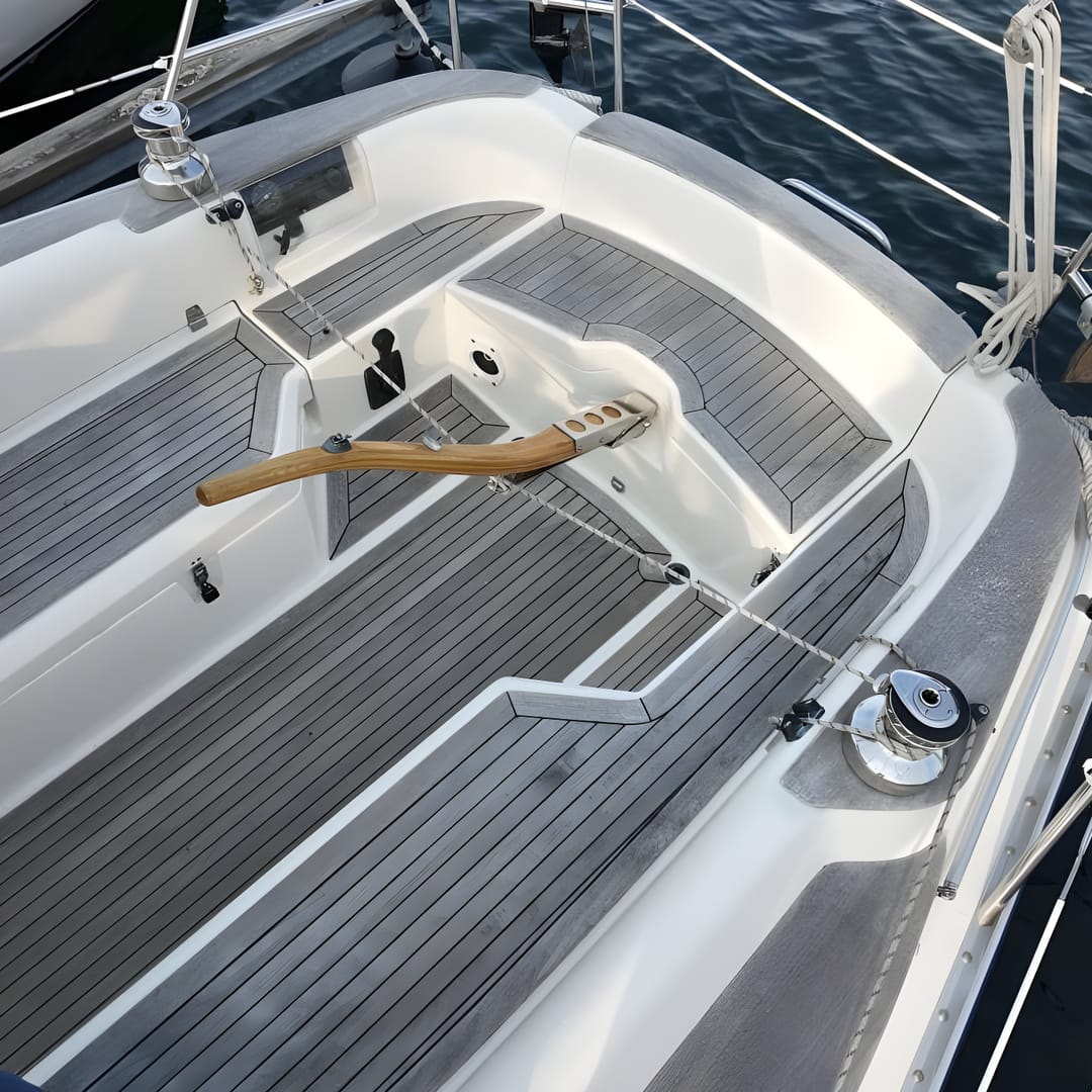 Парусное вооружение — фракционный шлюп с гротом на латах, несколько генуй, спинакеры для разных условий и закрутка Furlex. Такой комплект делает лодку универсальной как для дневных прогулок, так и для дальних переходов.