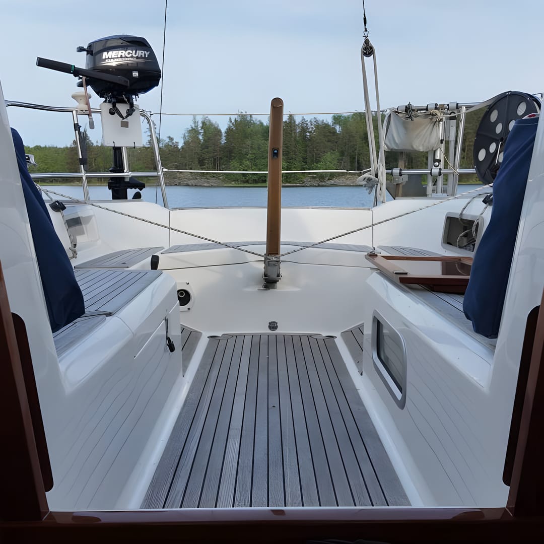 Это одна из тех лодок, где сразу чувствуешь порядок и заботу: всё аккуратно, дерево блестит, обивка свежая, системы в порядке. Видно, что владелец относился с настоящей скандинавской точностью — ничего лишнего, только чистота, надёжность и практичность.