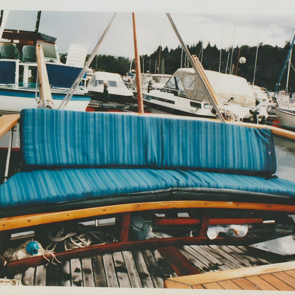Корпус построен по технологии карвельной обшивки — махагони по дубу — на верфи Hansen & Arntzen. Это значит, что доски крепятся встык, а поверхность корпуса получается гладкой, как у современных яхт.