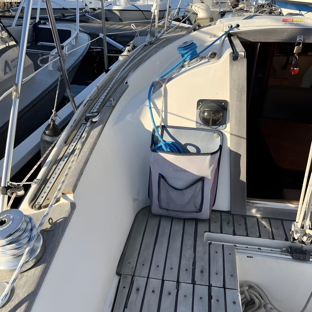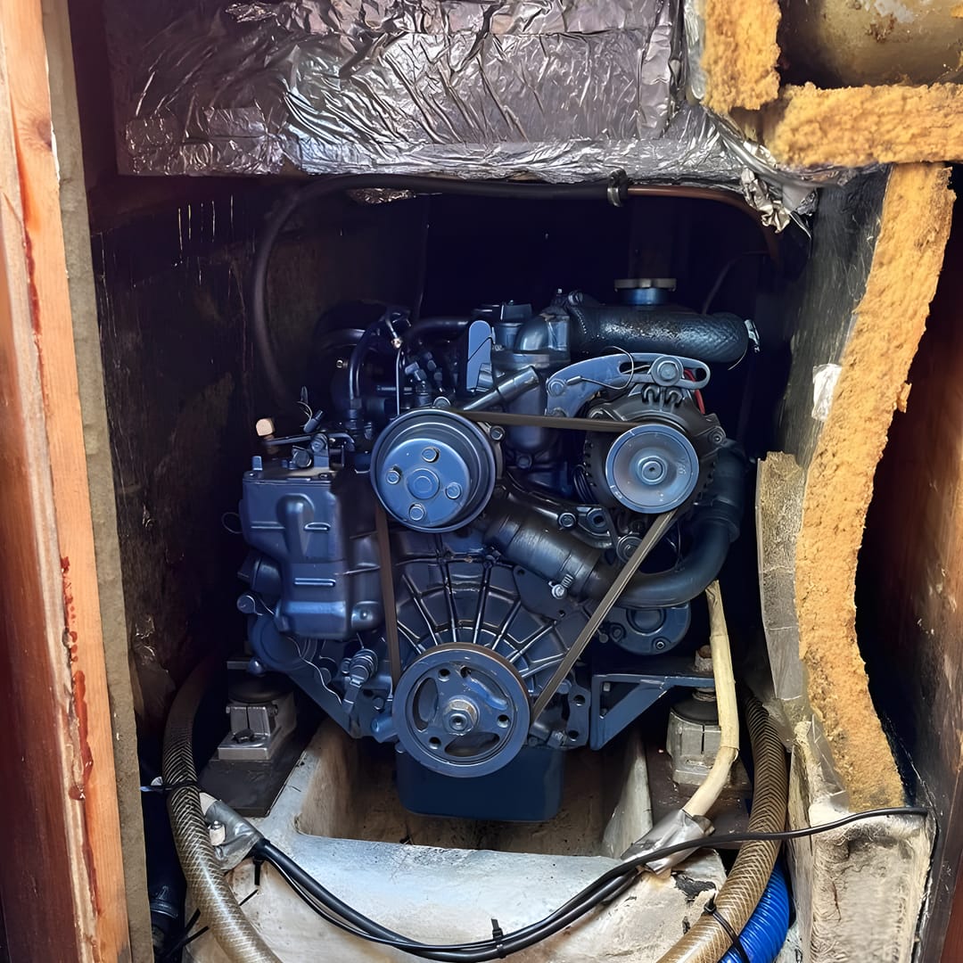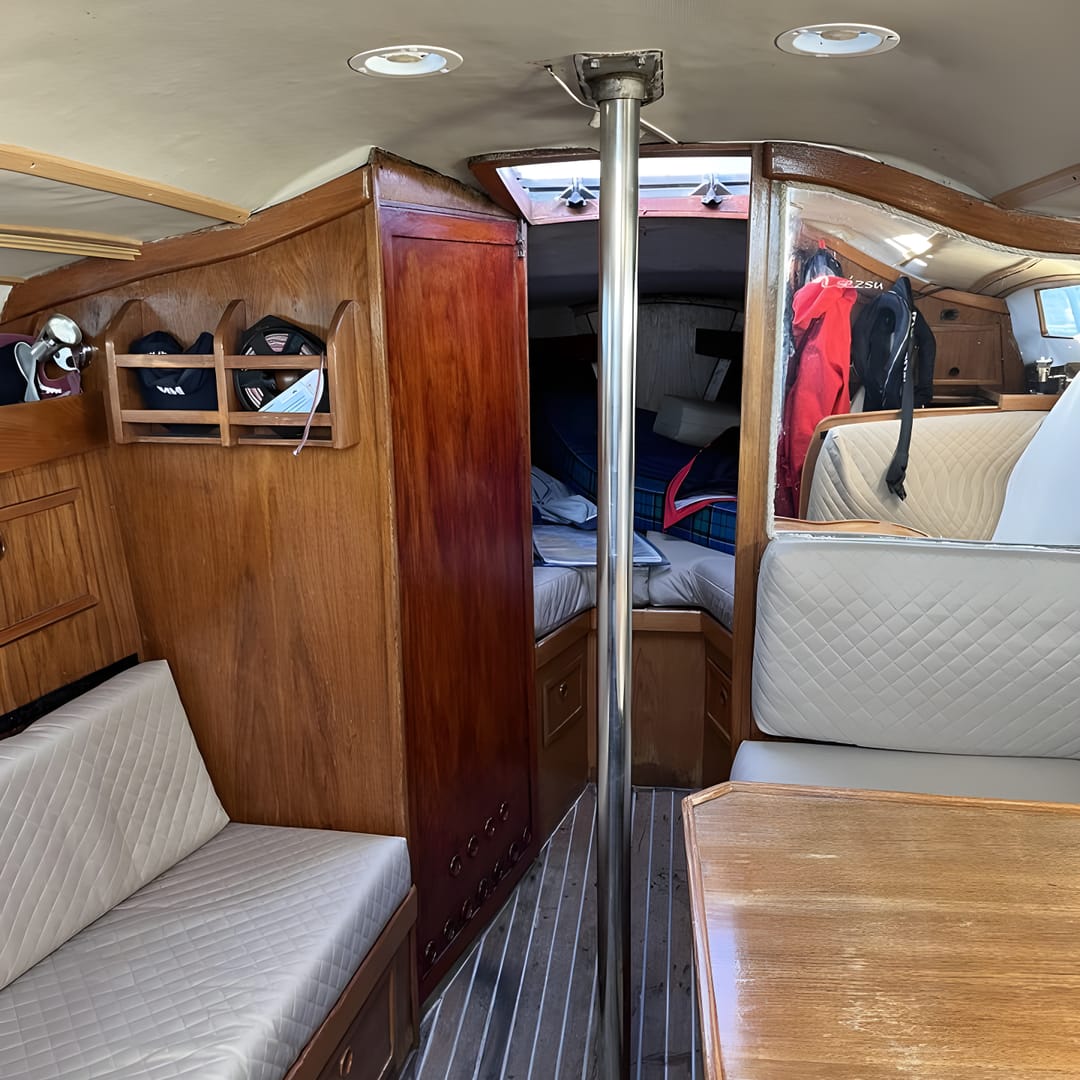 Мотор Sole обслужен на 2025 год, что для таких лет — огромный плюс. Состояние парусов радует: грот с полными латами, генуя и спинакер, все паруса прошли сервис в Atta Segel. В 2021 году были заменены все шкоты, установлен новый стоячий такелаж и lazyjacks.