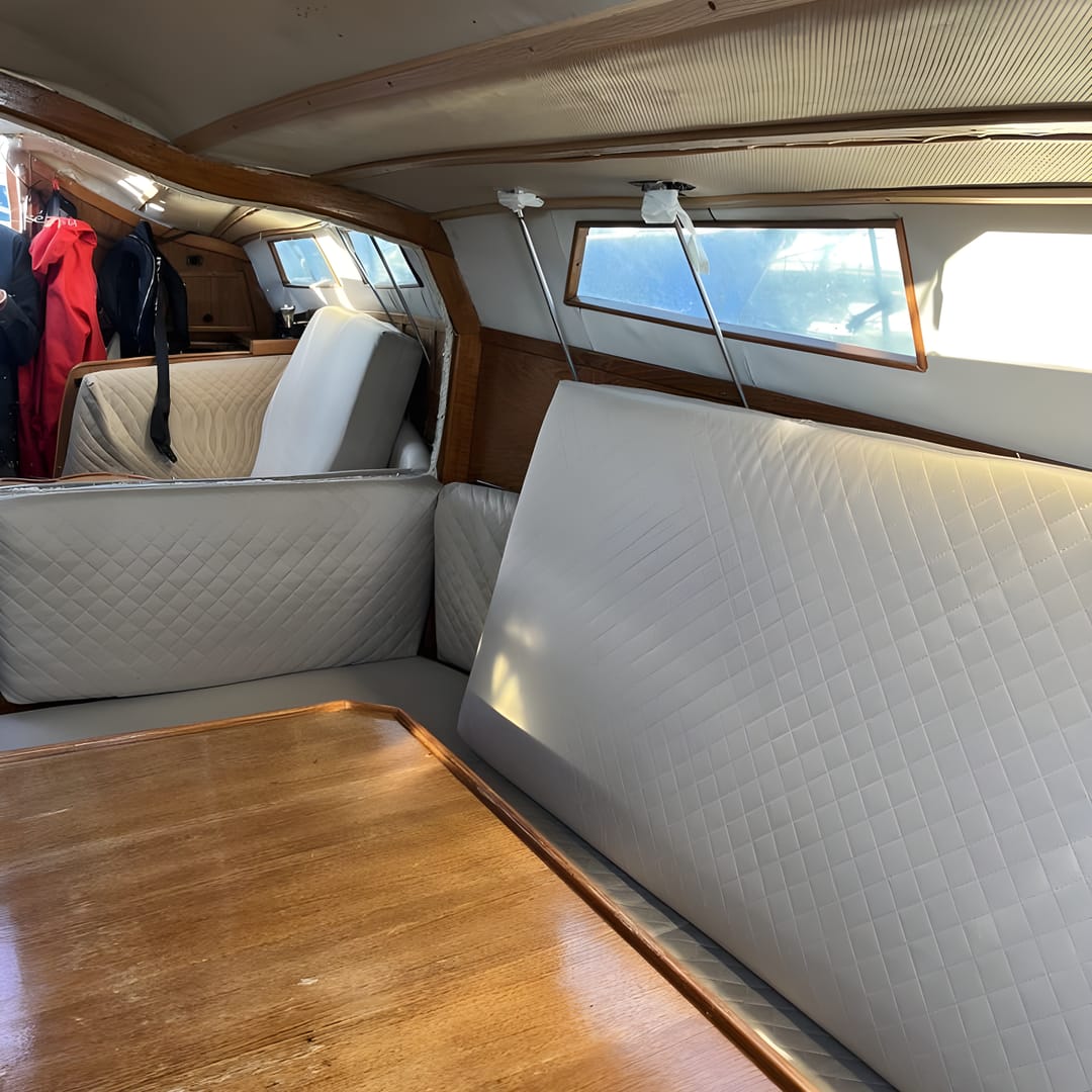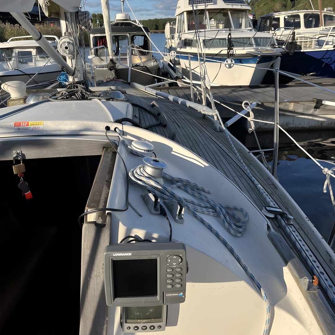 Корпус у лодки крепкий, а по внутреннему пространству — всё в духе старых шведских проектов: много дерева, простая планировка, хороший свет. Внимание — тик на палубе в плачевном состоянии, но это отличный шанс попробовать свои силы в реставрации и реально набраться опыта.