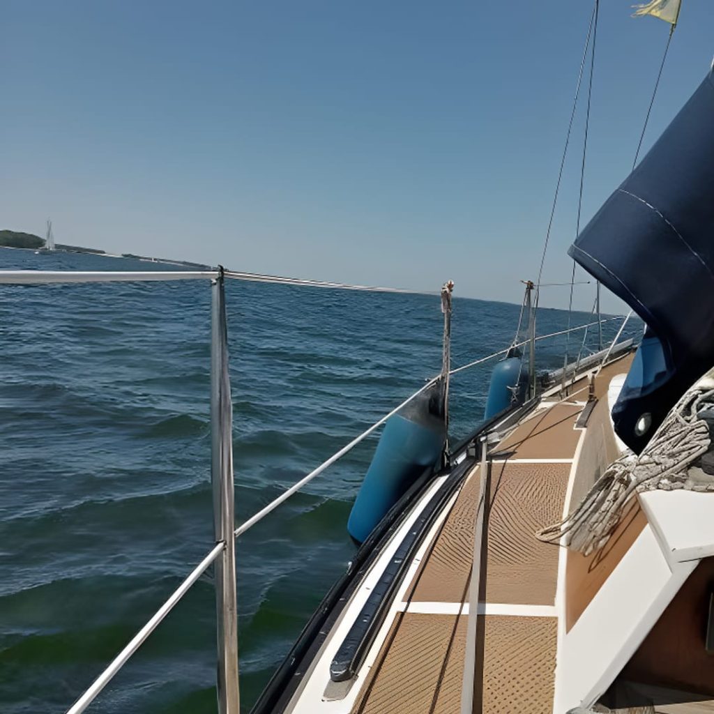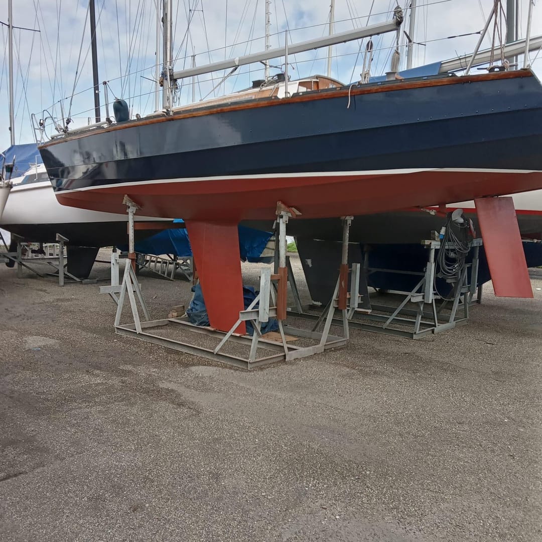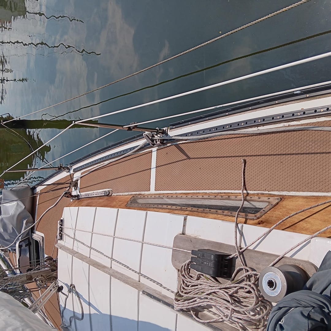 Парусное вооружение включает два грота и два передних паруса, все в рабочем состоянии. Генуя на закрутке облегчает управление, особенно в одиночку.