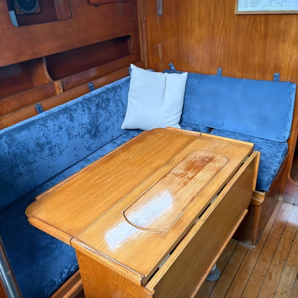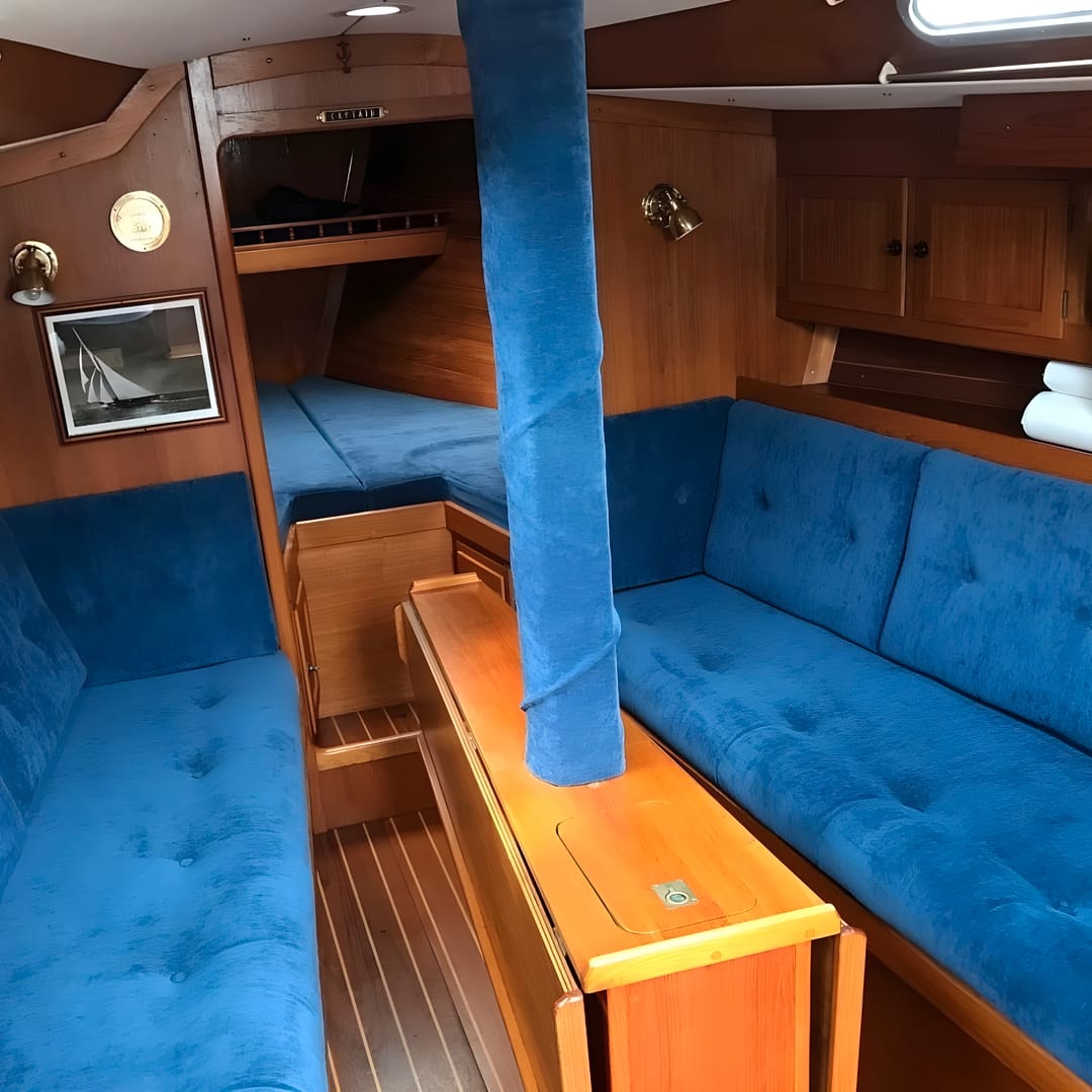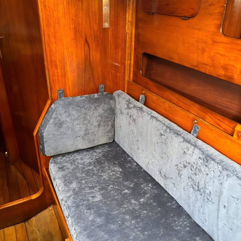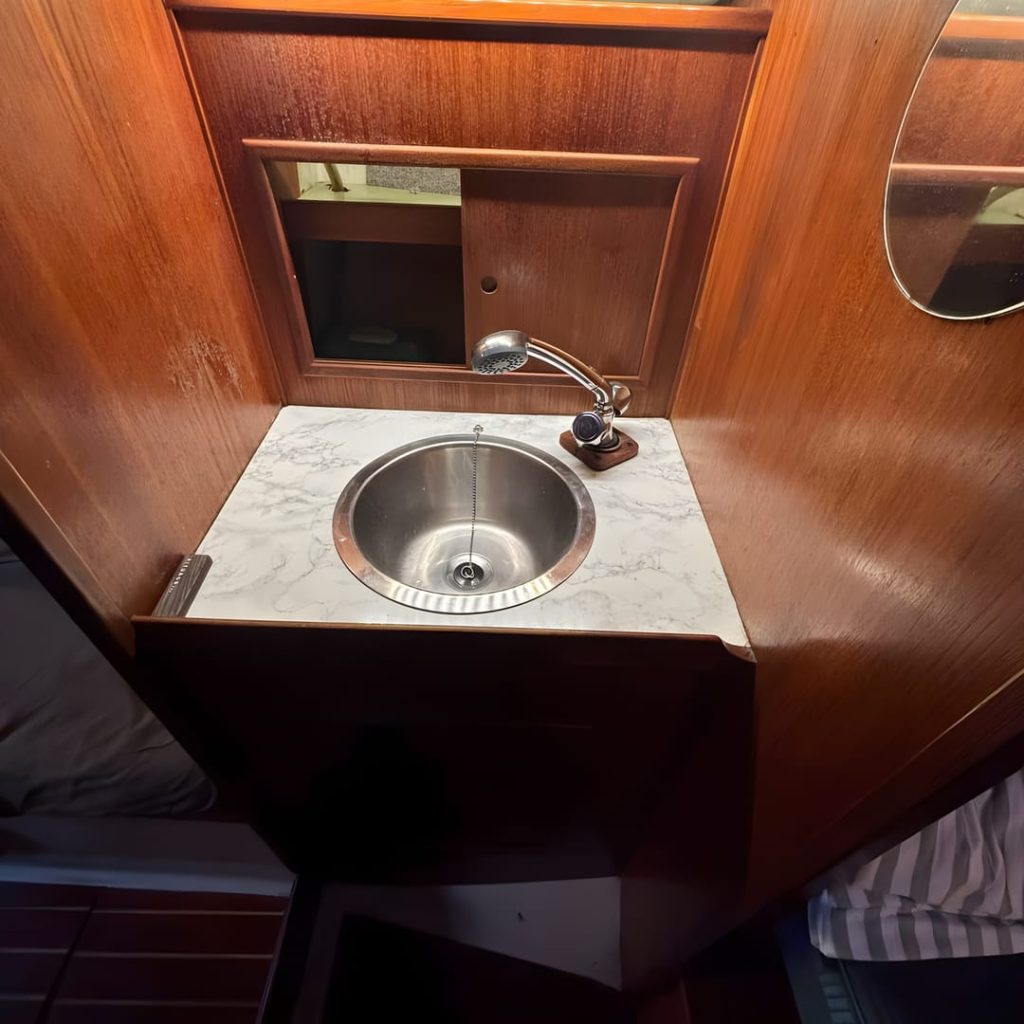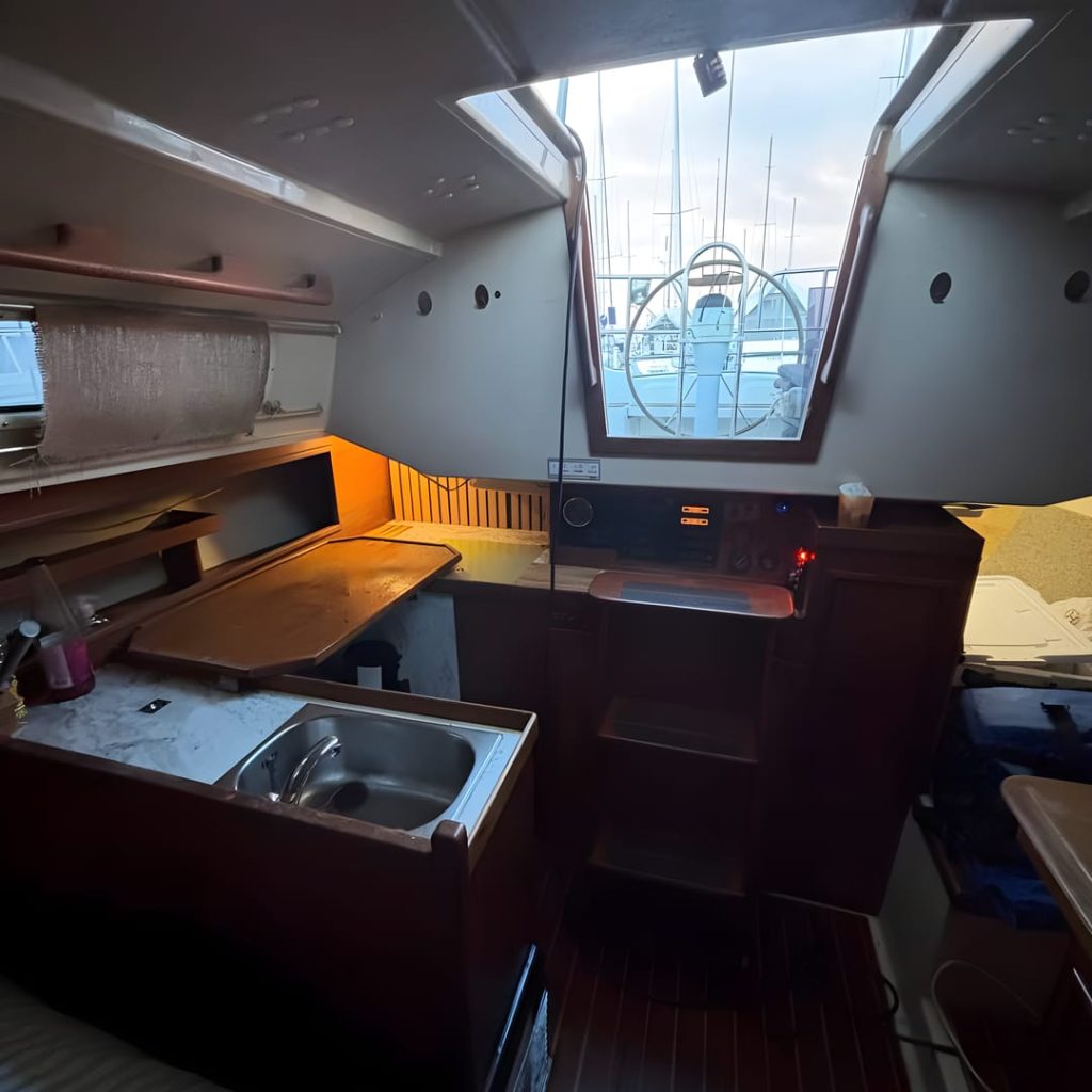 Внутри уютно: отделка из краснухи, просторный камбуз, новый компрессор для холодильника Isotherm (2024 г.), плита с двумя конфорками и духовкой, тёплый душ в кокпите, отопитель Eberspächer (нужен сервис, это учтено в цене).