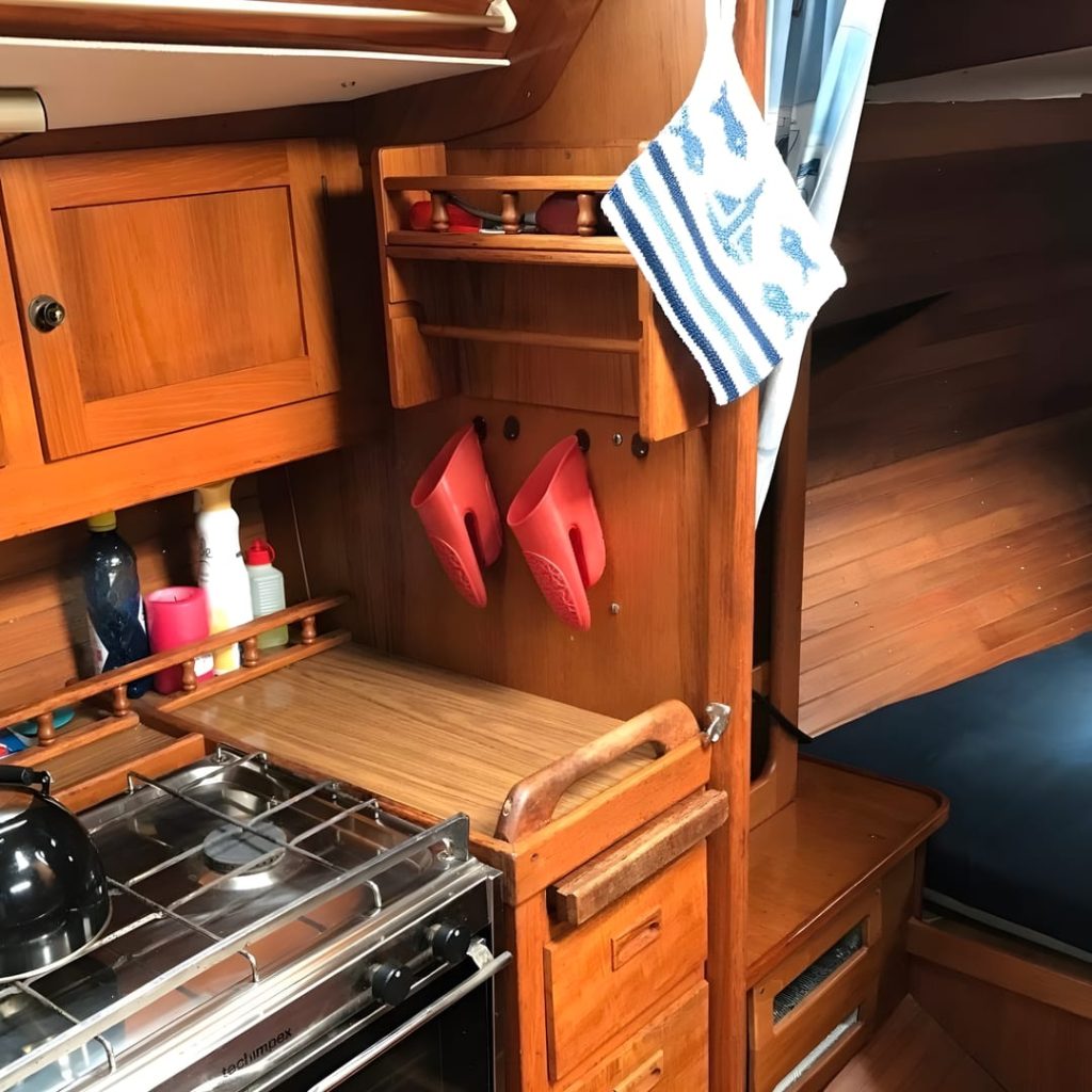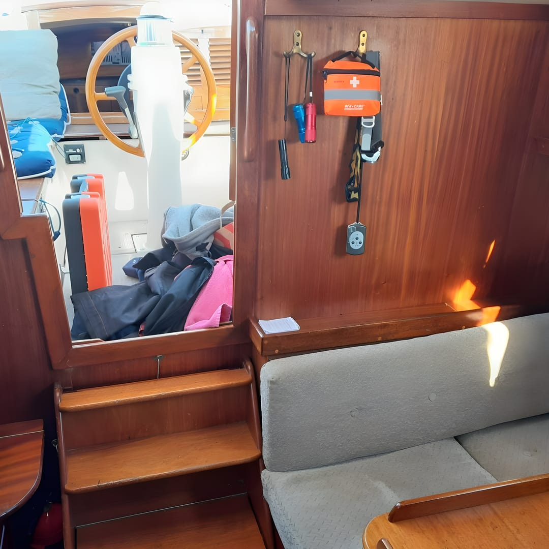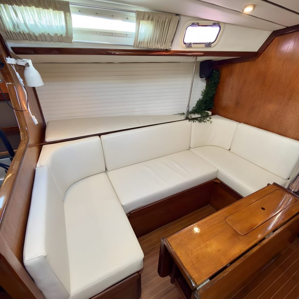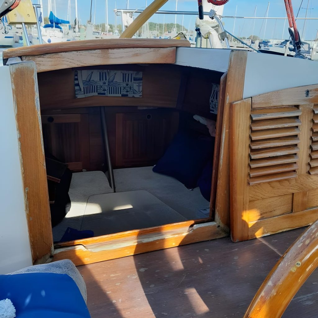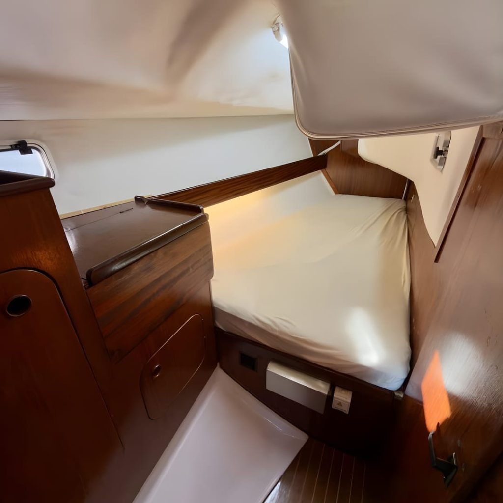 Внутри уютно: отделка из краснухи, просторный камбуз, новый компрессор для холодильника Isotherm (2024 г.), плита с двумя конфорками и духовкой, тёплый душ в кокпите, отопитель Eberspächer (нужен сервис, это учтено в цене).