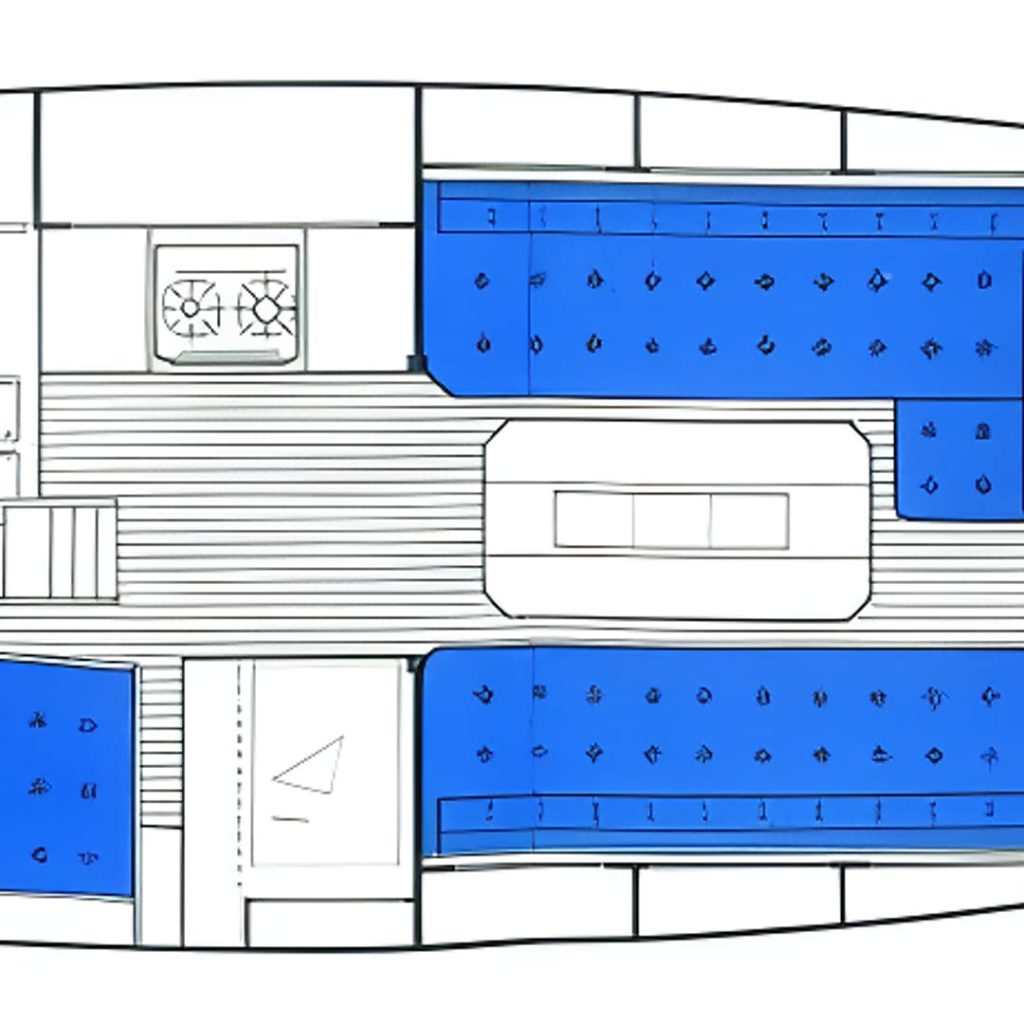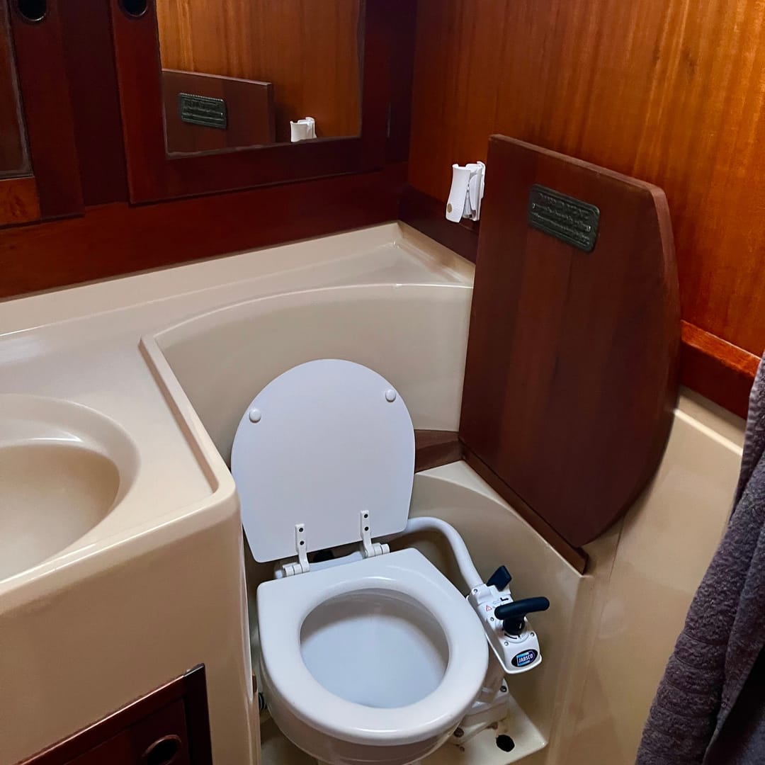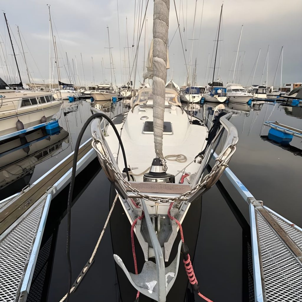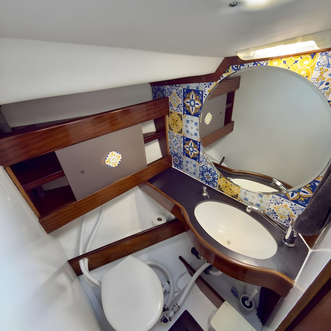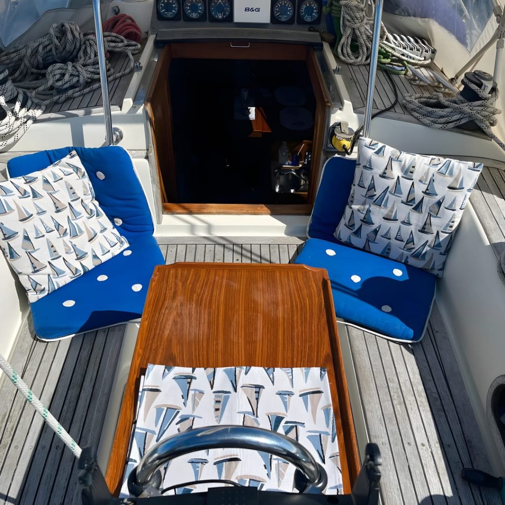 Внутри уютно: отделка из краснухи, просторный камбуз, новый компрессор для холодильника Isotherm (2024 г.), плита с двумя конфорками и духовкой, тёплый душ в кокпите, отопитель Eberspächer (нужен сервис, это учтено в цене).