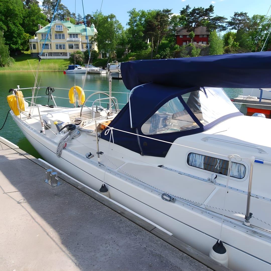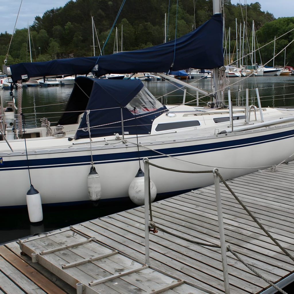 Rasmus 35 — одна из самых известных моделей с острова Orust. Корпус из толстого пластика, палуба без протекающего тика — всё в оригинале.