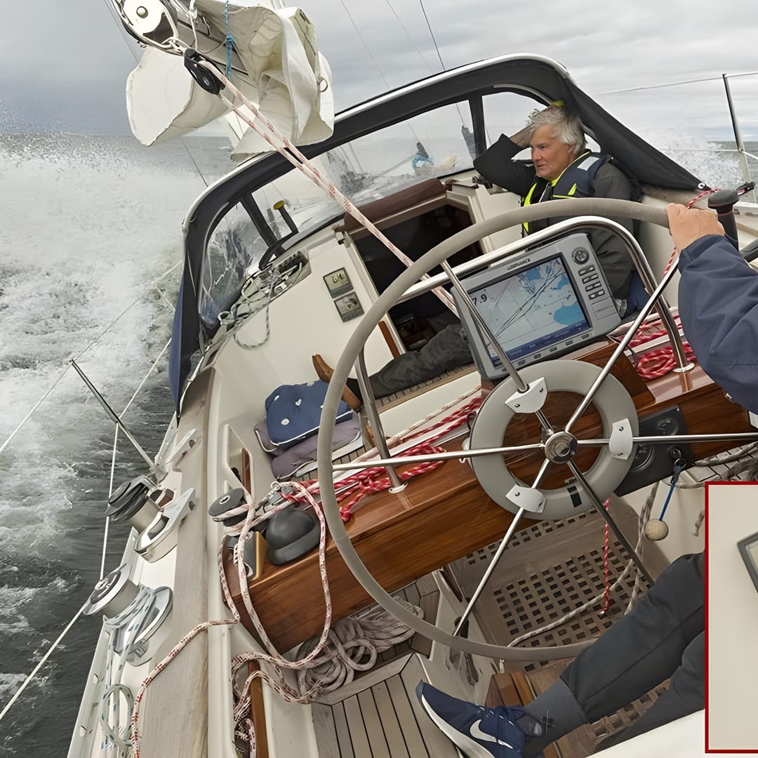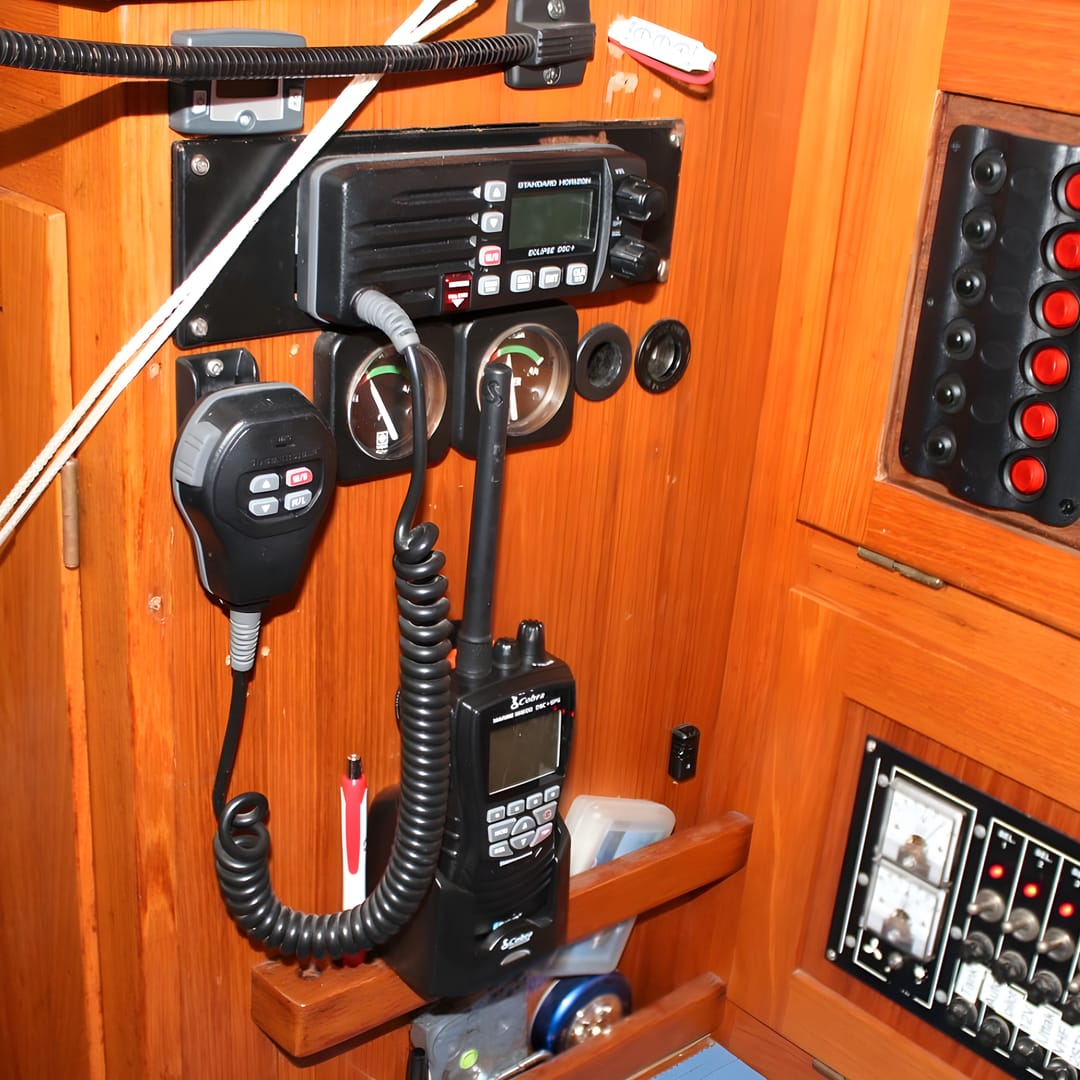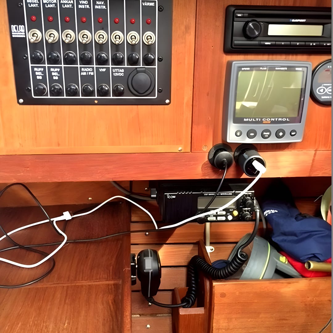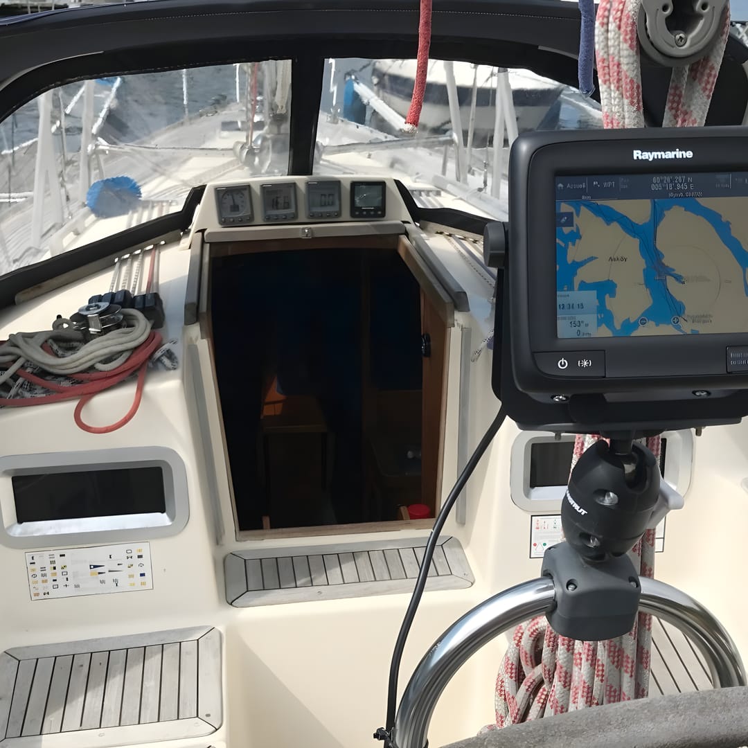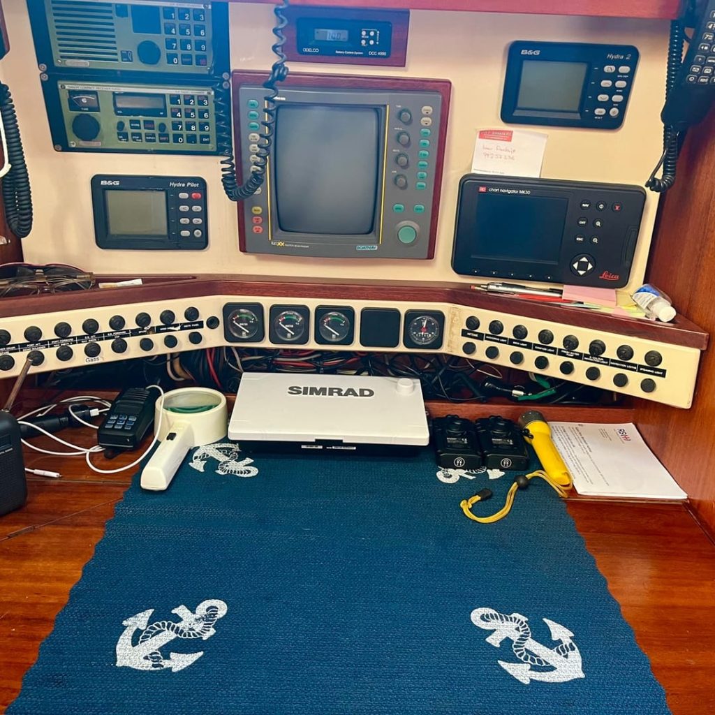 📡 Навигация: автопилот Autohelm, носовая подрулька Vetus, эхолот Echopilot, картплоттер Garmin, VHF Icom