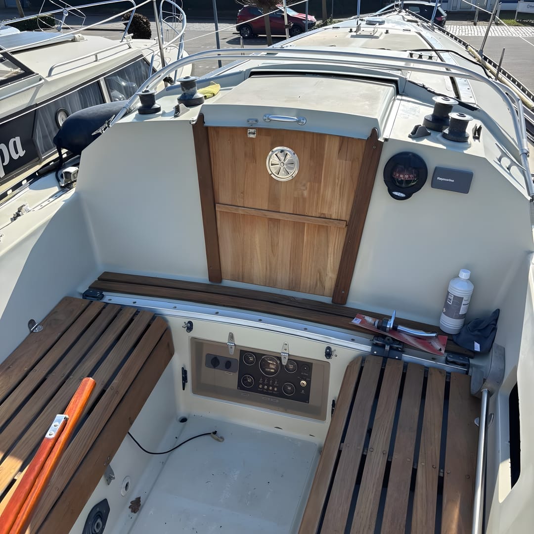 Владелец заменил ремень ГРМ и сальник гребного вала в 2024 г. Электроника обновлялась: автопилот Autohelm, картплоттер Garmin, эхолот Echopilot, носовая подрулька Vetus.