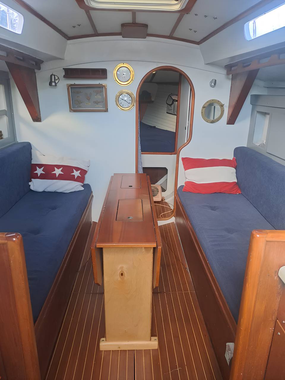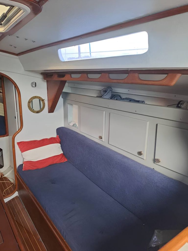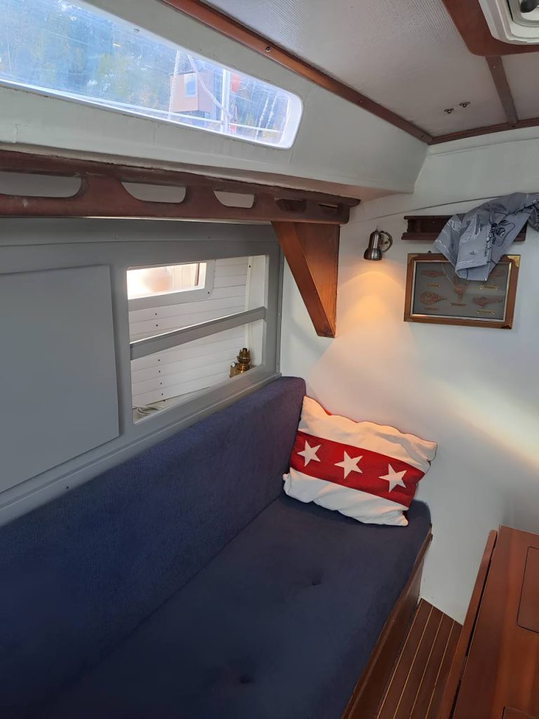 Интерьер обновлён предыдущим владельцем: новые подушки, ухоженное дерево. В салоне и на камбузе ощущается классический скандинавский стиль. Недавно заменены люк в форпике и спрейхуд.