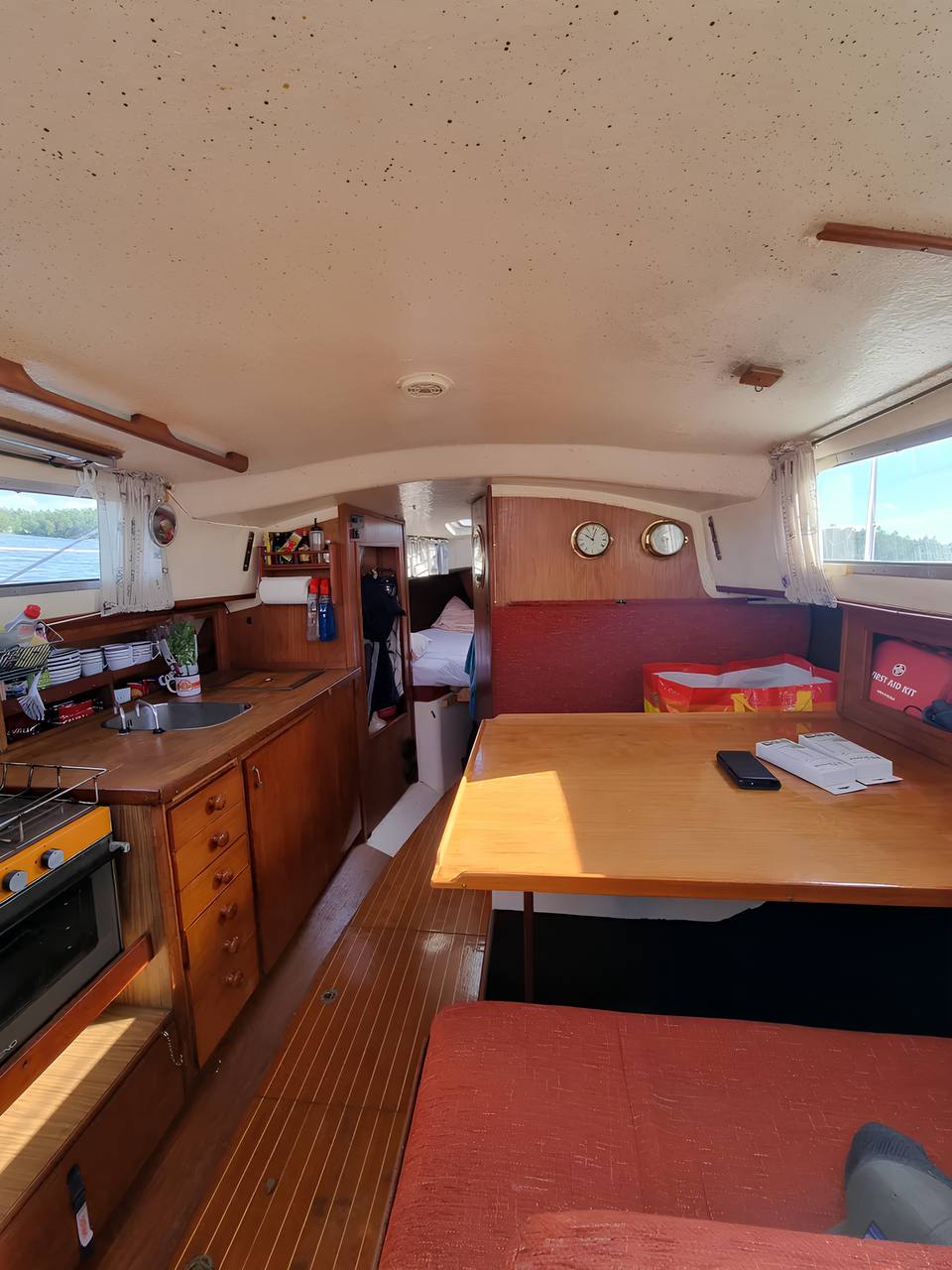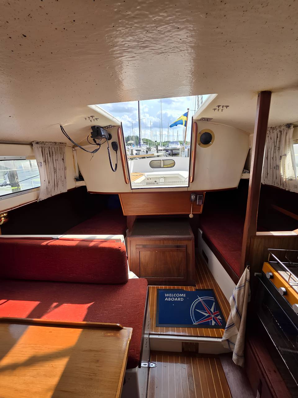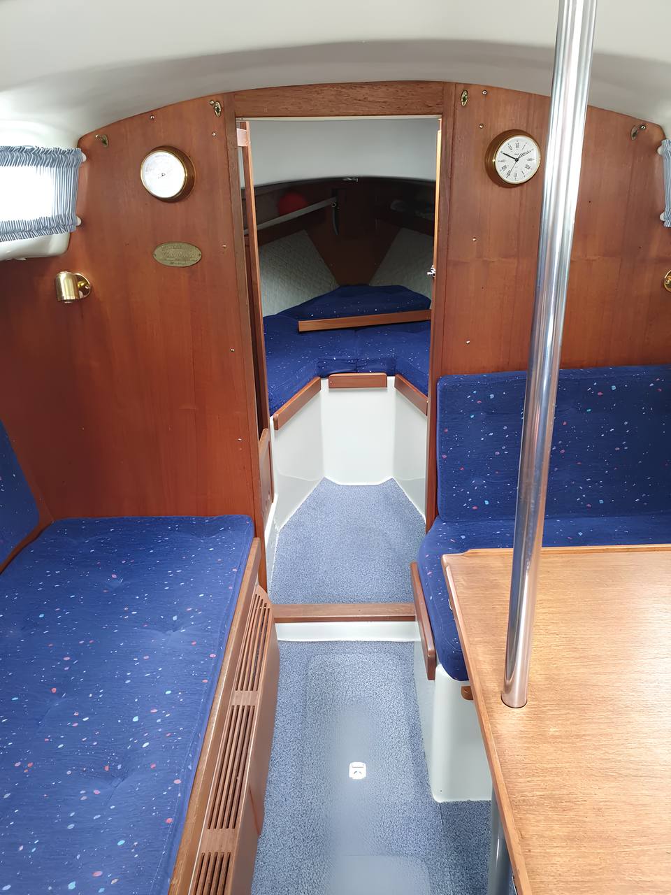 Интерьер обновлён предыдущим владельцем: новые подушки, ухоженное дерево. В салоне и на камбузе ощущается классический скандинавский стиль. Недавно заменены люк в форпике и спрейхуд.