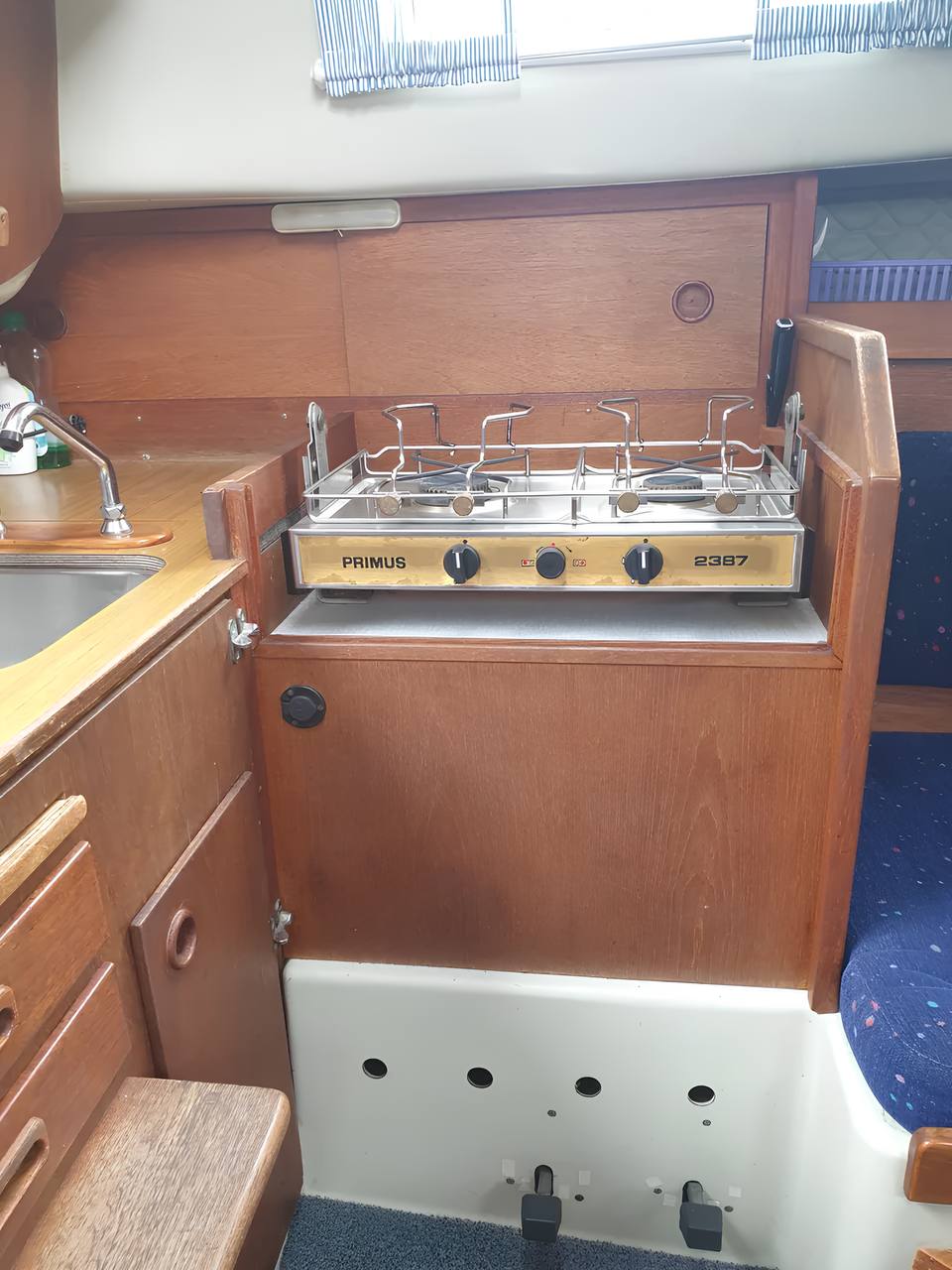 В кокпите удобно отдыхать под большим тентом, а под парусами легко выходит на 6 узлов только под одним стакселем. Отличный вариант за свои деньги!